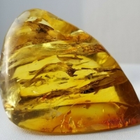 There are organic inclusions inside the stone. this is natural amber. this amber is more suitable for souvenirs. but when turning (if sharpened) - this stone can crumble.