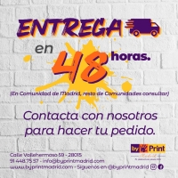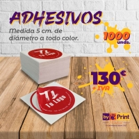 1000 unds adhesivos troquelados de 5 cm de diámetro. diseño incluido, iva incluido y gastos de transporte para madrid incluidos.