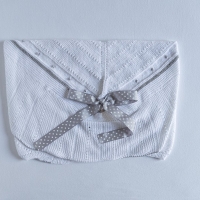 Faldón de piqué blanco con borde de ganchillo en rosa