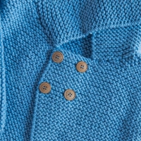 Conjunto de chaqueta de hojas de lana blanca con capota y braguita de lunares azul