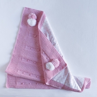 Manta de lana rosa forrada con tela de estrellitas y pompones