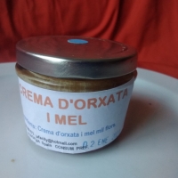 Miel ecològica de romero y crema de horchata, para untar. 120 ml.