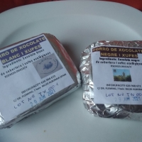Pastilla de chocolate negro y blanco con chufas. ración.
